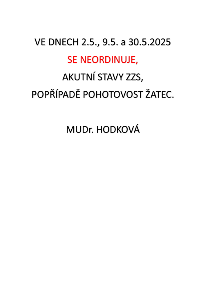 VE DNECH 2.5., 9.5. a 30.5.2025 SE NEORDINUJE,