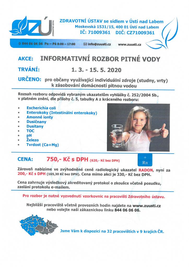 Informativní rozbor pitné vody pro občany využívající individuální zdroje (studny, vrty) k zásobování domácností pitnou vodou.