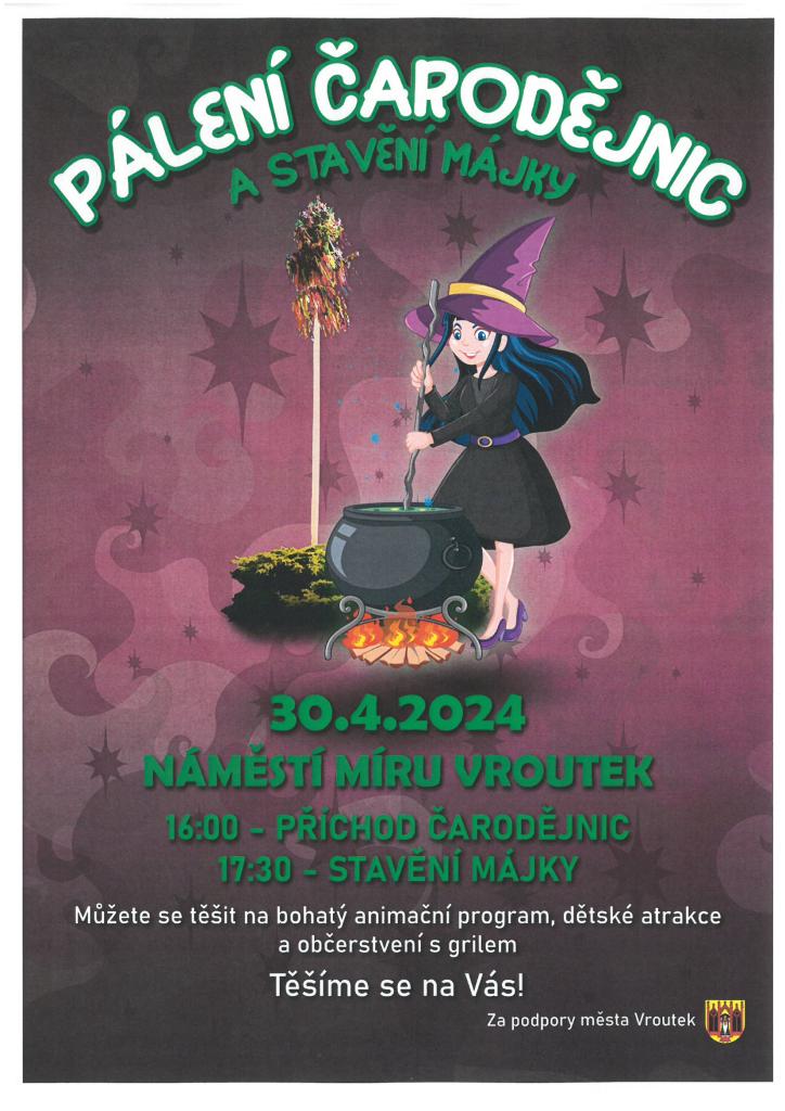 Dne 30. 4. 2024 od 16:00 hod na náměstí Míru ve Vroutku.