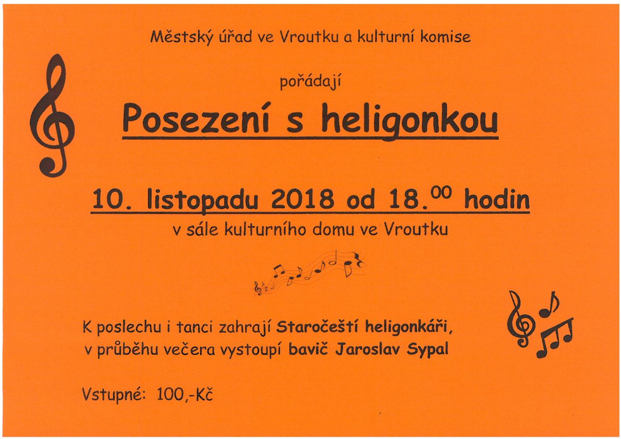 Posezení s heligonkou 10.11.2018 od 18:00 hod v Kulturním domě ve Vroutku