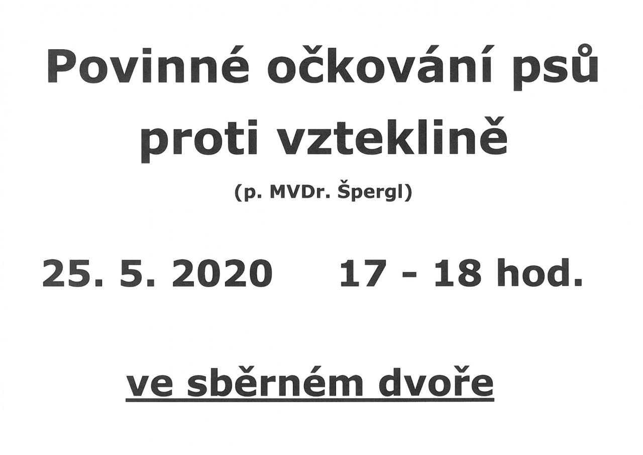 Povinné očkování psů proti vzteklině dne 25.5.2020
