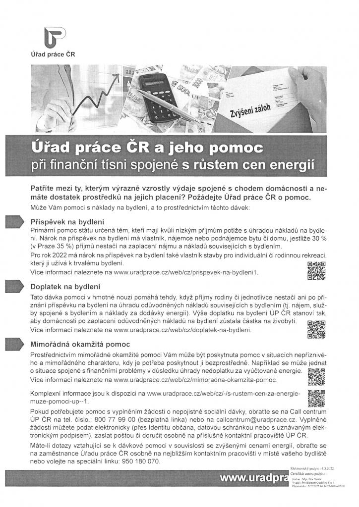 Úřad práce ČR a jeho pomoc lidem při finanční tísni spojené s růstem energií