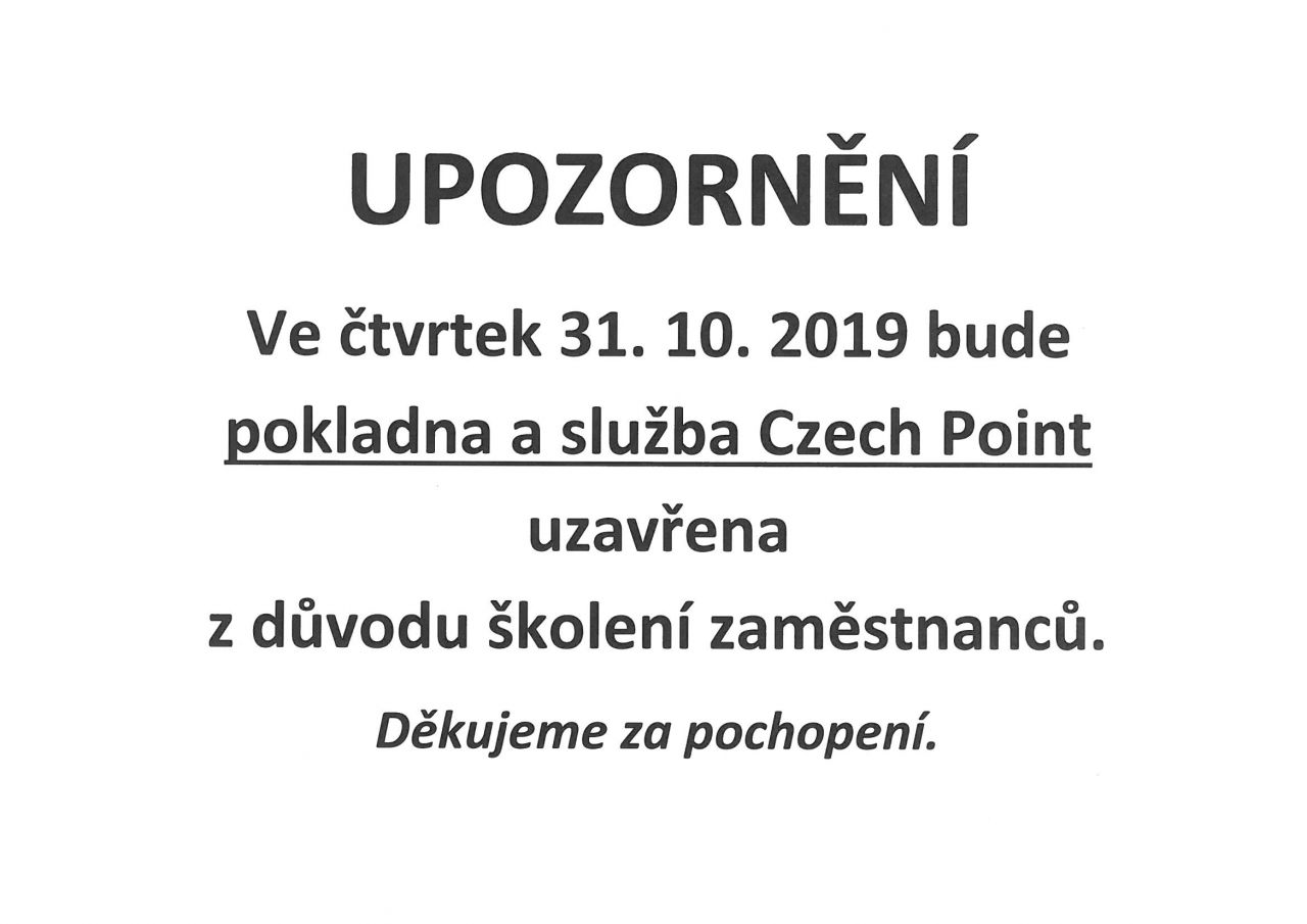 UPOZORNĚNÍ - uzavření pokladny na MěÚ Vroutek 1