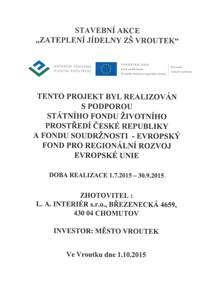 Stavební akce "Zateplení školní jídelny ZŠ Vroutek"