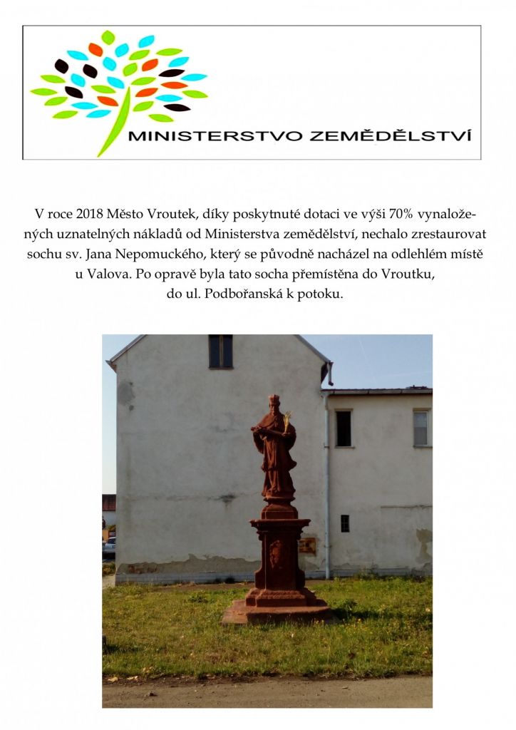 Zrestaurování barokní sochy sv. Jana Nepomuckého, Přemístění z Valova do Vroutku k mostku v ul. Podbořanská.
