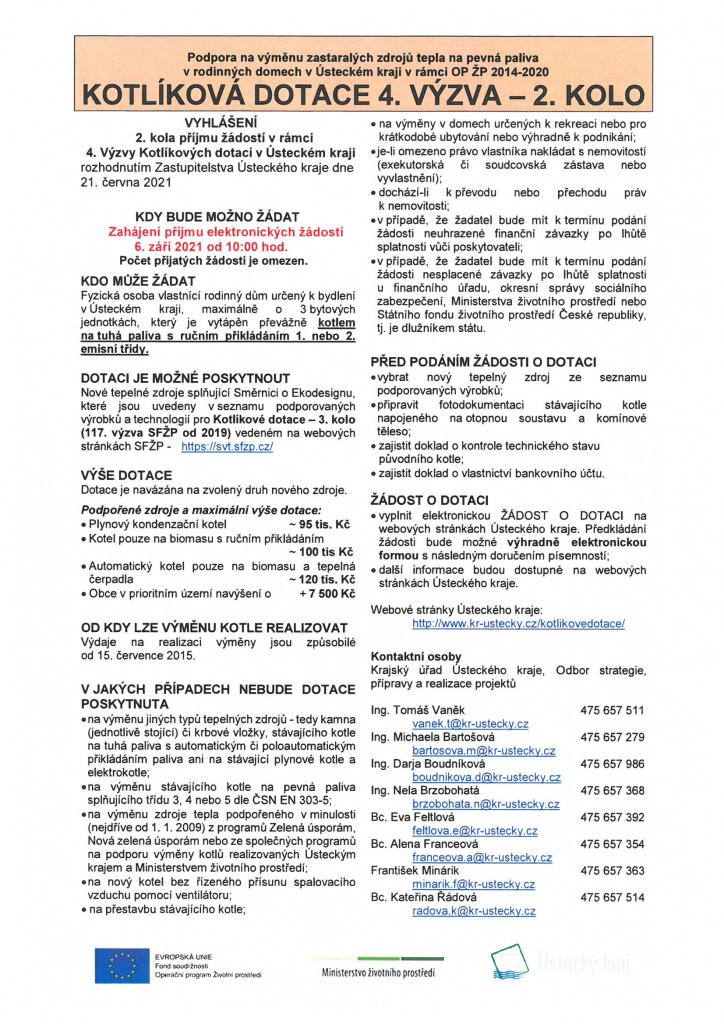 Ten, kdo nestihl podat žádost o dotaci na výměnu zdroje tepla v minulých výzvách, má nyní ještě možnost. Od 6.9.2021 je otevřeno 2. kolo Kotlíkové dotace na výměnu zdrojů tepla nevyhovující 1. a 2. emisní třídy.